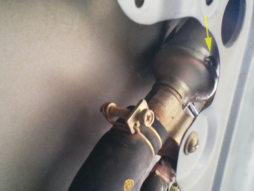 | 矢印部分のアップ。見にくいが溶接部分に穴が開いている。 ↓ |