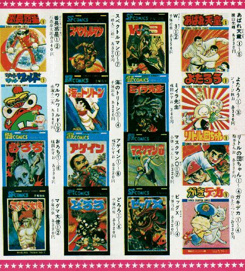 秋田書店のマンガにはキレイなカタログが入っています。これは多分昭和50年ごろの物だと思います。最新刊が「ブラックジャックE(ここには画像なし)」ですから。