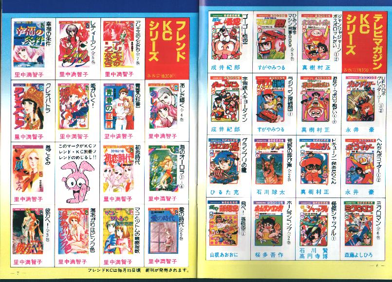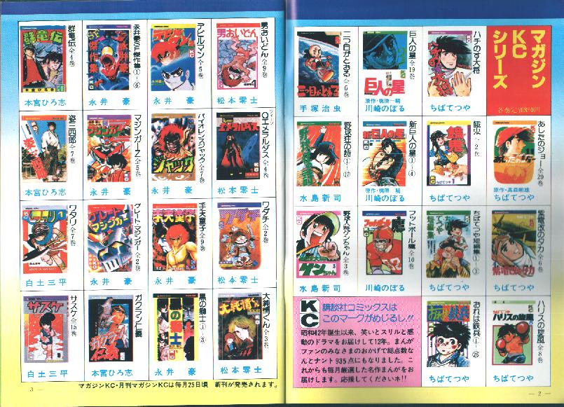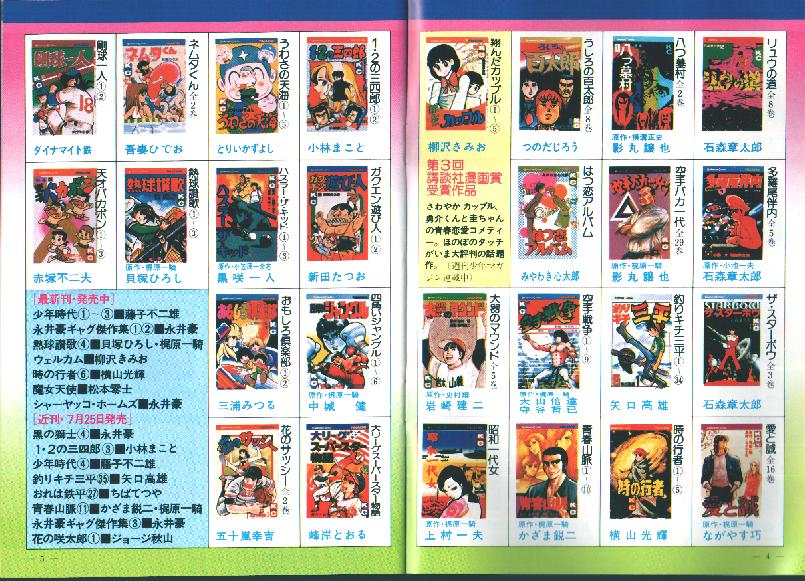 昭和54年6月現在の講談社コミックスの全カタログ(絶版除く)だそうです。表・裏の表紙を除いて30ページのうち2〜7ページ分です。