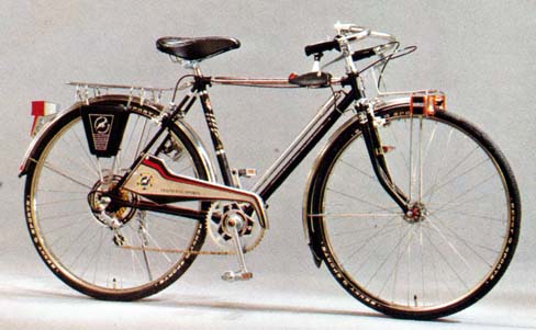 ![]() | ☆コンドルベニーシャインGT 大きな画像 10段変速ドロップハンドル版。ツーリングを意識したRキャリアがポイント。定価\51,000。 |