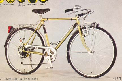 ![]() | ☆ミヤタカスタム27/CT-27P 大きな画像 背景が異なるのはカタログの裏表紙からスキャンしたため。通産省のGマークを受賞した車種。だけど部品は鉄だらけなんですけど?とりあえずサドルはシームレスにしたいもんです。一応フレームはハイテン。定価\36,000。 |