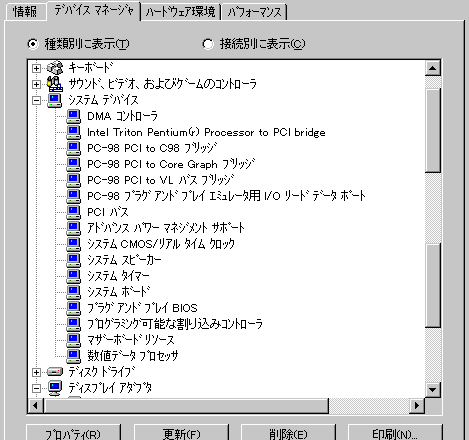 おまけ:PC9821V13/S5C3の正常なシステムデバイス一覧