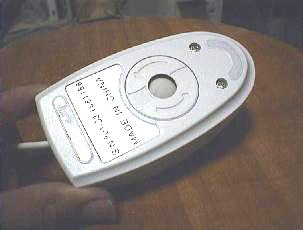 ![]() | 上の続きですがなんというか底のすべり板がペラペラの透明アクリル(光が反射しています)です。これがまた買った時点で折れてはがれていました。しかもマウスパッドに引っかかってどうしようもない代物です。同様のすべり板を使用したマウスが結構売られていますが買わない方がいいです。 |