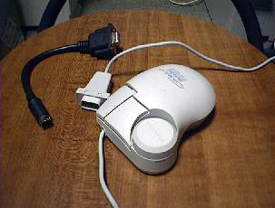 ![]() | GRAIOという商品名でELECOMの製品(PC98用)です。なかなか変わった製品で手前の丸い部分にマウスボールが入っていて、その上の円筒形のダイヤルをまわすとカウンタ数を上下できます。ただマウスポインタのシンクロが悪く、上方向にやたらと大きく動きます。それさえなければよい製品なんですが。 新品:たぶん\780 |
