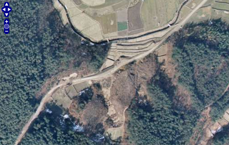 | 現地は現在どうなっているのかというと、田んぼは埋め立てられ、山は削られ、何かの作業所ができている。現地はストリートビューも通っているので、その様子が確認できる。 |