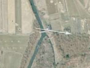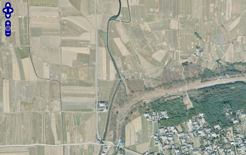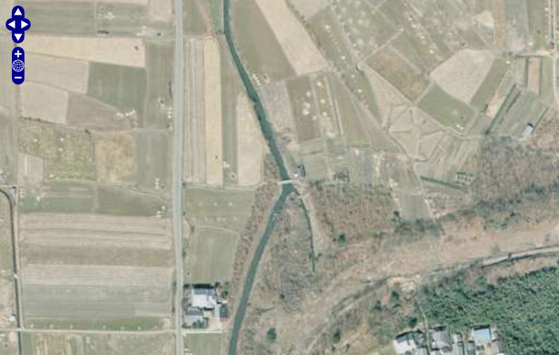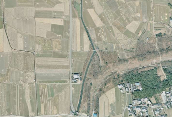| ★残念なお知らせ★ 現在この橋は存在しません。耕地整理できれいさっぱり無くなりました。 国土地理院の「国土変遷アーカイブ」による現地周辺の2008年撮影の航空写真。 ↓ |