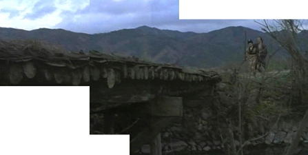 | 恋仲の娘の肩を借りて橋を渡る三下さんのシーンを繋いだ画像。 (あまりに暗い絵だったので、少し明るくした) ↓ |