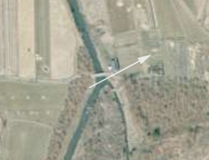 | 上の航空写真をズームしたもの。ぱっとしない橋が写っている。 ↓ |