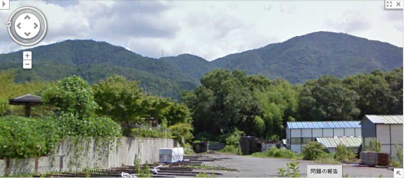 | グーグルのストリートビューで「京都府亀岡市河原林町」あたりから東方向を見た画像。山並みがほぼ一致。 ↓ |
