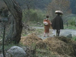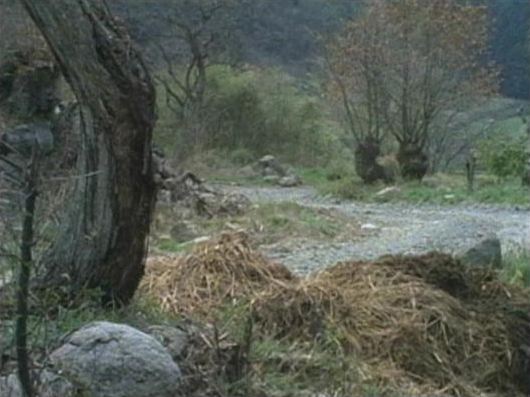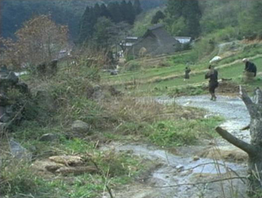 | 要するに「第11話 龍胆は夕映えに降った」の棚田の街道と同じ場所である。 どこかで見たような民家。 ↓ |