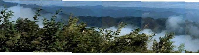 | 霧の山並みを右から左にパンしていくシーンを繋いだもの。呆れるほど長くなった。 ↓ |