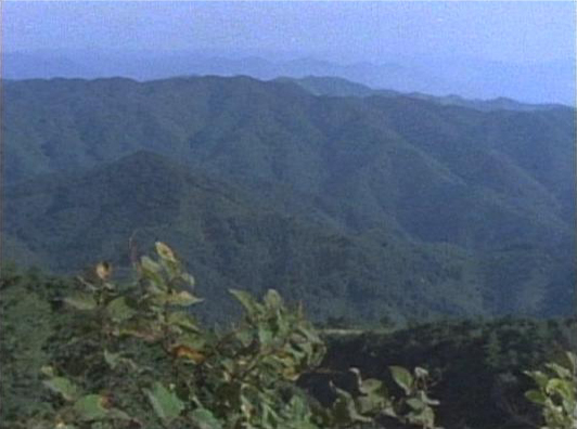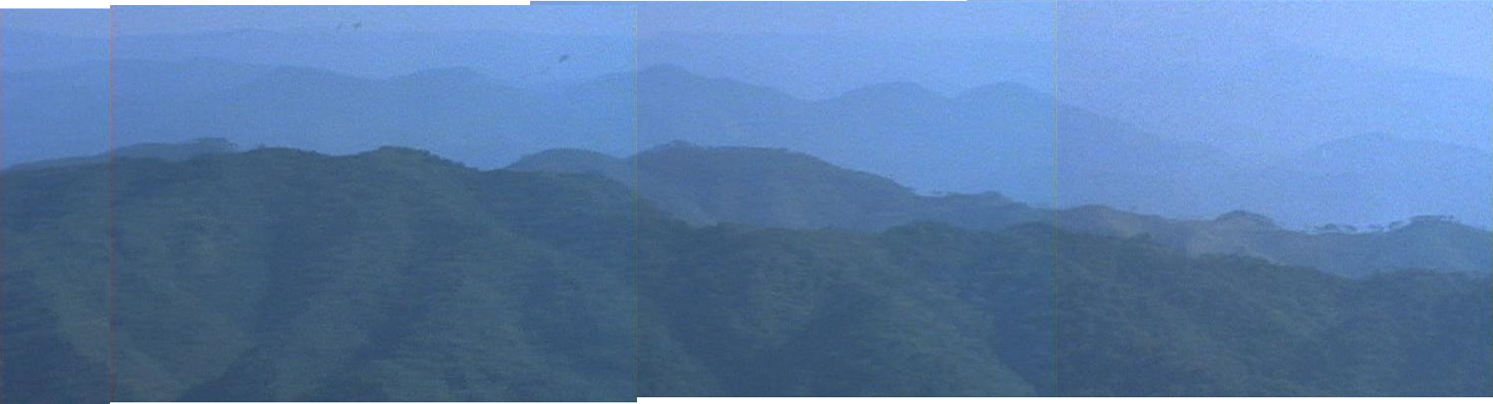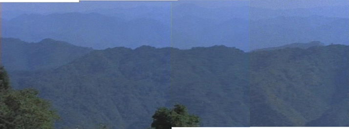 | 「夜泣石は霧に濡れた」の山並みを右から左にパンしていくシーンを繋いだもの。 ↓ |