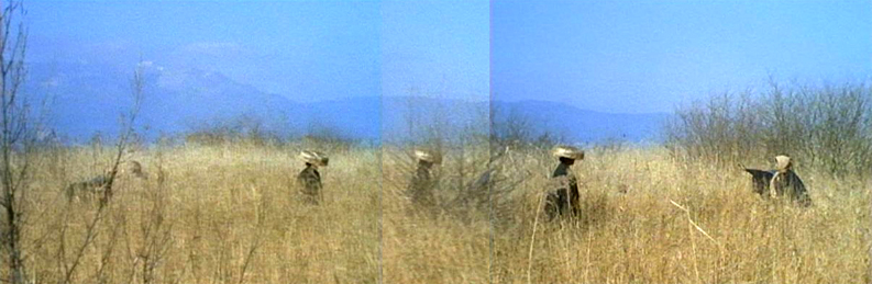 | シーン1。(切り貼り合成画像) 山並みのラインがあまりにも薄かったので、コントラストを上げた。ちょっと目がチカチカする。 ↓ |
