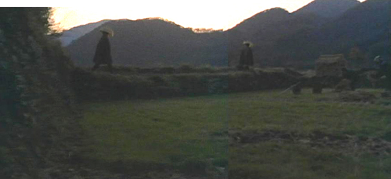 | 画像Aと画像Bを比べると、山並みがほぼ同じであることがわかる。ただし山の見え方から考えて、画像Aは画像Bよりも、より西の地点で撮られている。 画像Bのロケ地は「曽我部町犬飼川北」であるから、画像Aのロケ地は「犬飼下和田」か「犬飼上和田」であると考えられる。 |
