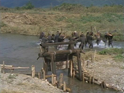 | 以上のことから、冒頭の航空写真の白丸あたりがロケ地であると考えられる。おそらく細い水たまりの南端あたりに、堰を設置したのであろう。 |