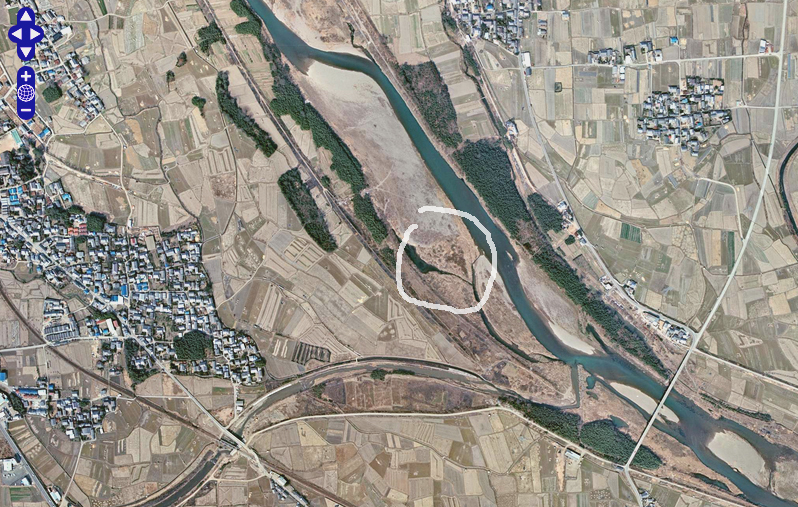 | 右手にも河原が広がっている。(切り貼り合成画像) ↓ |