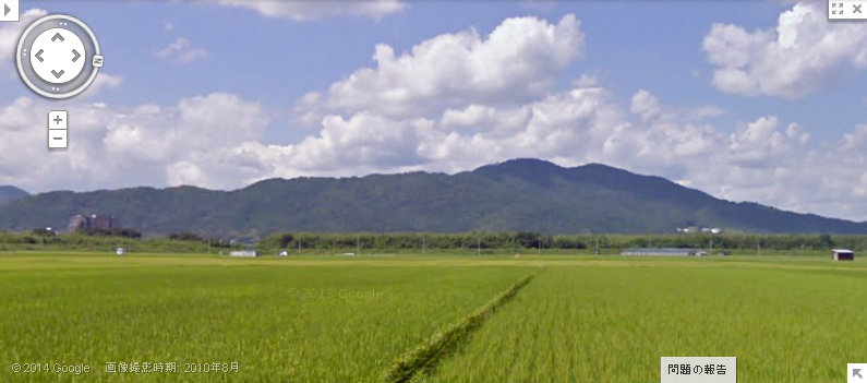 | 現地付近のグーグルのストリートビューの画像。おおむね西の方向を見ている。 ↓ |