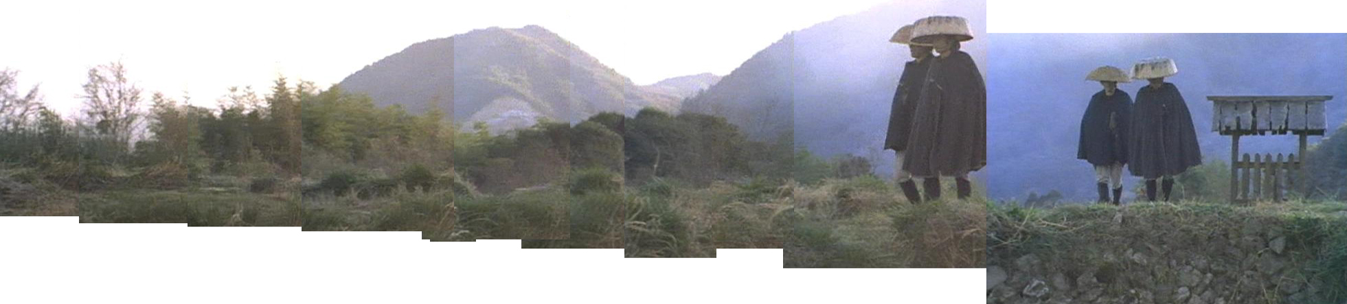 | 右がニセ紋次郎。奥の山の崖に注目。(切り貼り合成画像) ↓ |