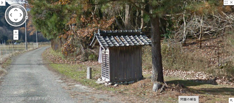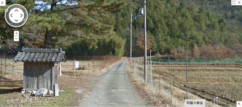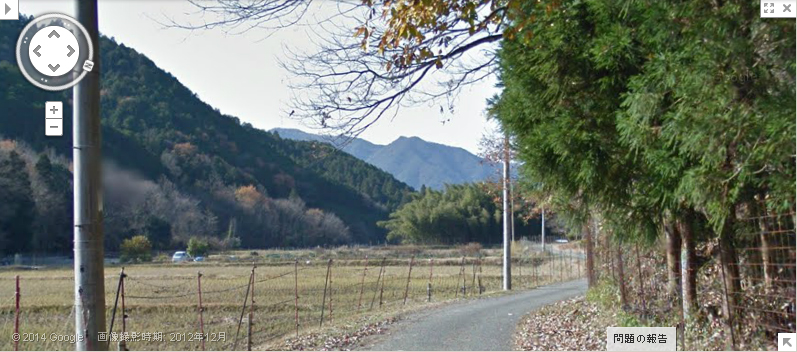 | グーグルのストリートビューの画像。ずばりここではないだろうが、他の場所だと木が邪魔をして、遠景の山並みが見えなくなる。 ↓ |
