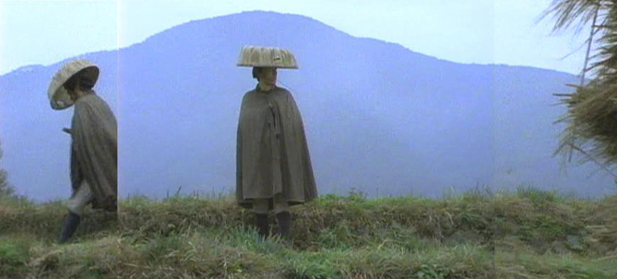 | 石垣の街道を行く紋次郎。(切り貼り合成画像) ↓ |