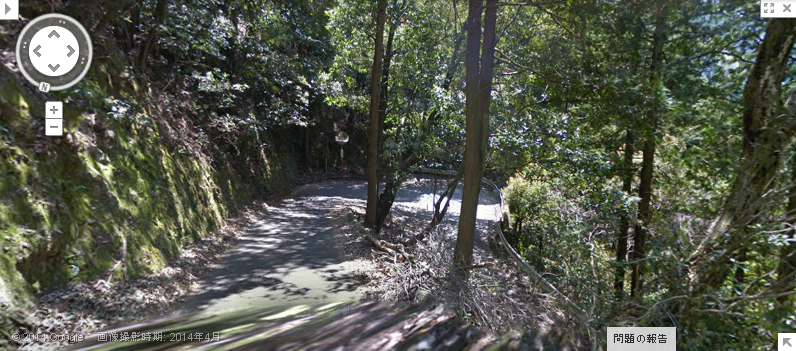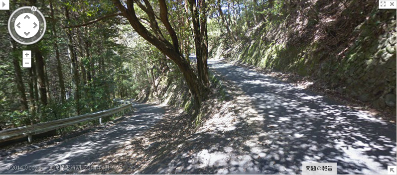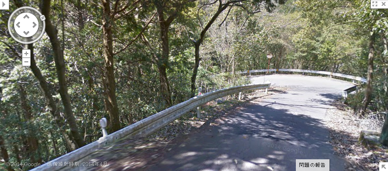| ↑ 画像Bと比較して、中央の妙に曲がった木(枝?)が同じ物ぽいので、どうも同じカーブを逆に登って撮っていると思われる。 |