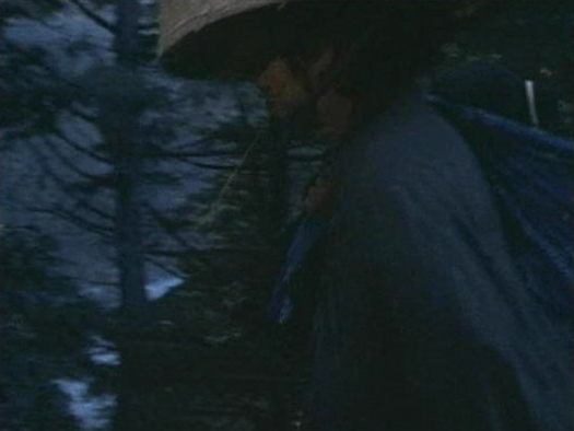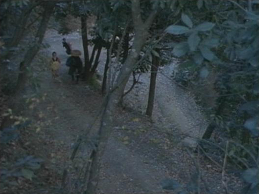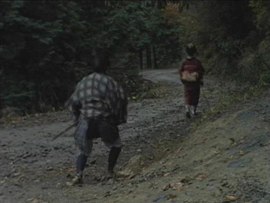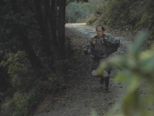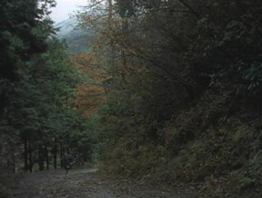 | 走り去る穂積。奥に山が見える。 ↓ |