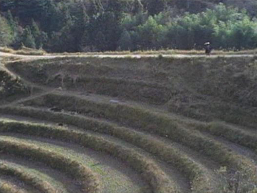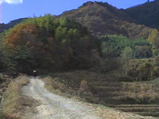 | 棚田の横を歩き出す紋次郎。 ↓ |