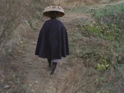 | 街道を下ってくる紋次郎。 ↓ |