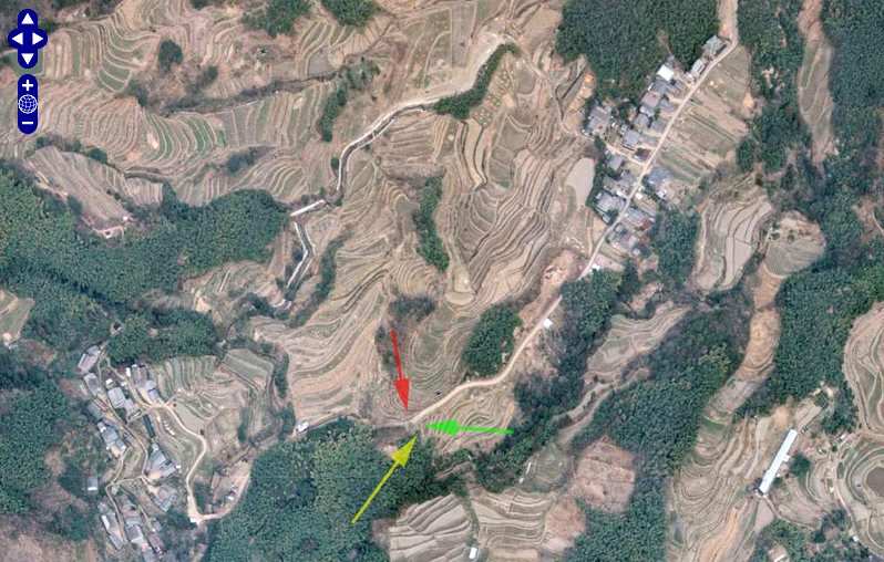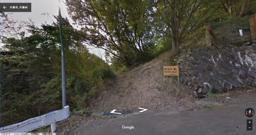 | グーグルのストリートビューの画像。道路の舗装・拡張でかなり削られたと思われる。 ↓ |