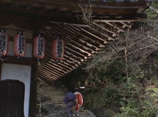 | 「京都 二尊院」で検索すれば、容易にお寺の様子を紹介したサイトが見つかります。 このシーン。左に見えるのは二尊院の九頭龍辨財天堂(九頭竜弁財天堂)。提灯は小道具では無く本物。 ↓ |