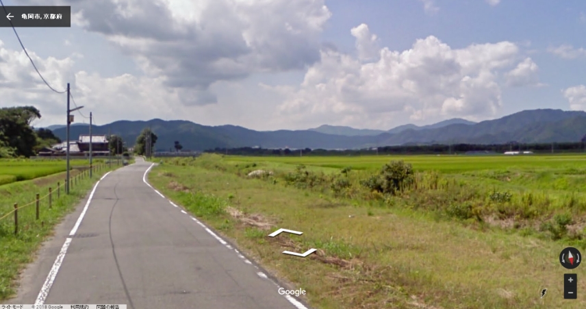 | 現地から取得したグーグルのストリートビューの画像。山並みが一致。 ↓ |