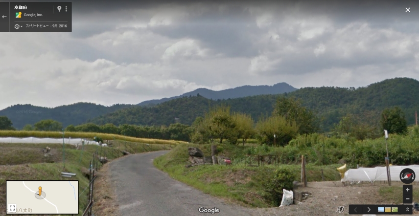 | グーグルのストリートビューの画像。遠景の山並みが一致。ただしここがロケ地というわけではない。 ↓ |