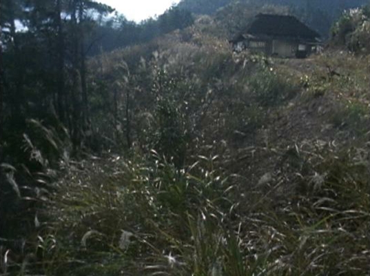 | 峠の茶屋。右に砂利道が見える。 ↓ |