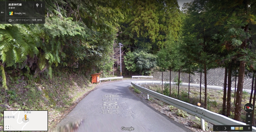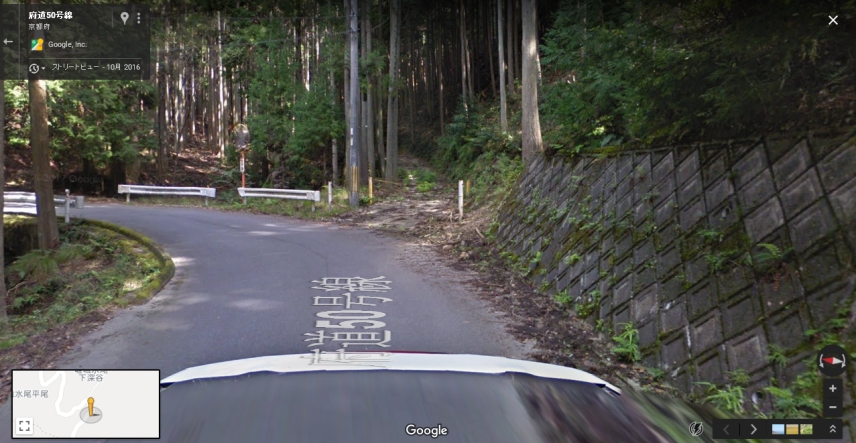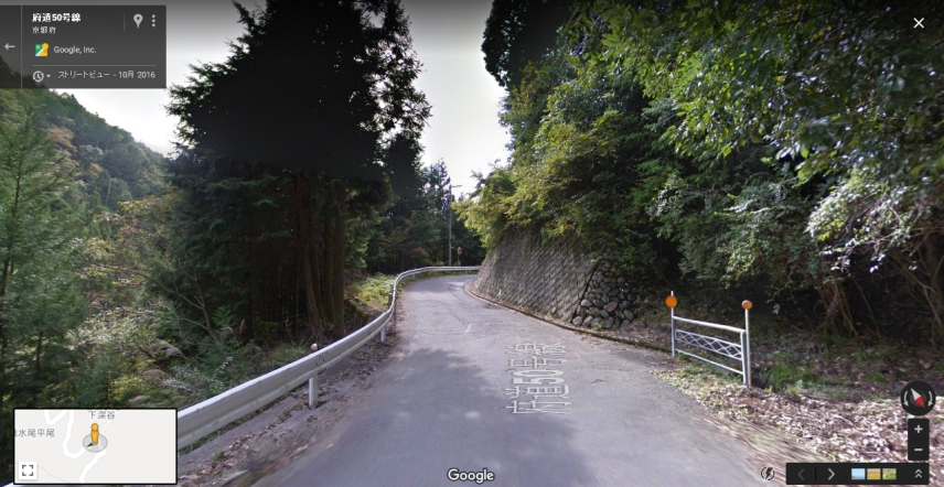 | 画像Bとほぼ同じ地点から取得したグーグルのストリートビューの画像。道のうねり具合が一致。 ↓ |
