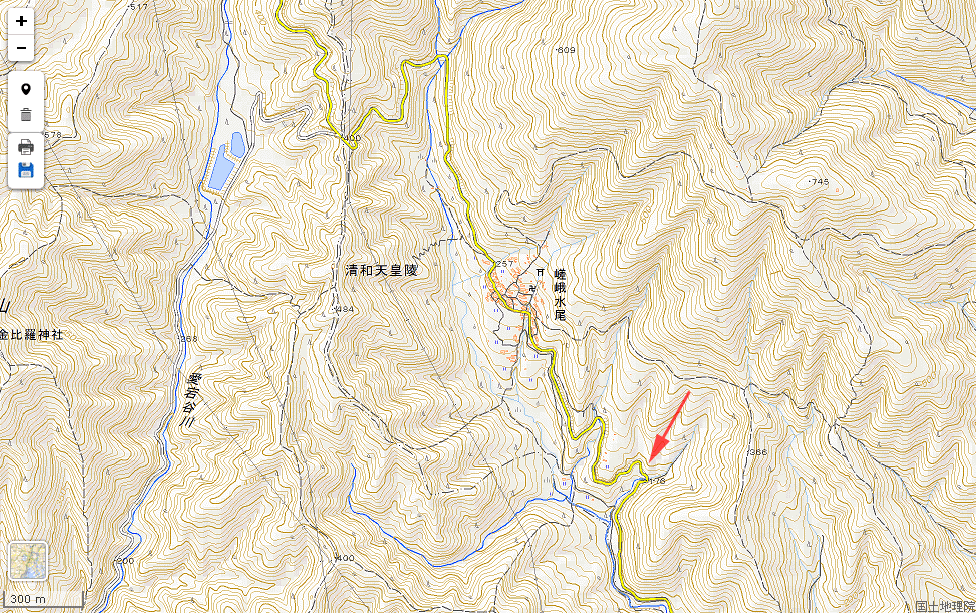 | ここしばらく嵯峨水尾づいていて、府道50号線をあちこち探索して非常によく似た場所を見つけたので紹介。ただし根拠が少々薄弱で、あまり自信がない。 |