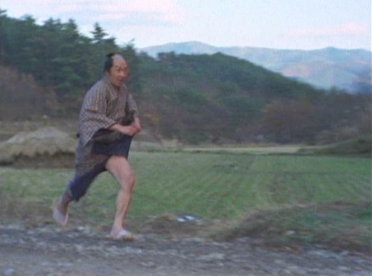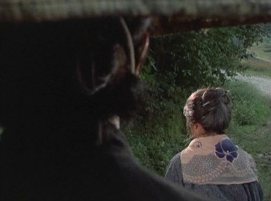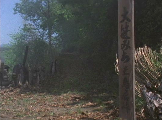 | ↑ 画像Aの背景の山並みや、田んぼに降りるあぜ道が一致していると思う。 「第17話 無縁仏に明日を見た」のシーン。 ↓ |