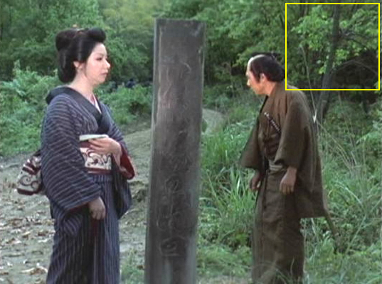 | (1)「水車は夕映えに軋んだ」 木枯し紋次郎・写っちゃったで紹介した「水車は夕映えに軋んだ」の自動車の写りこみシーン2つ。 ↓ |