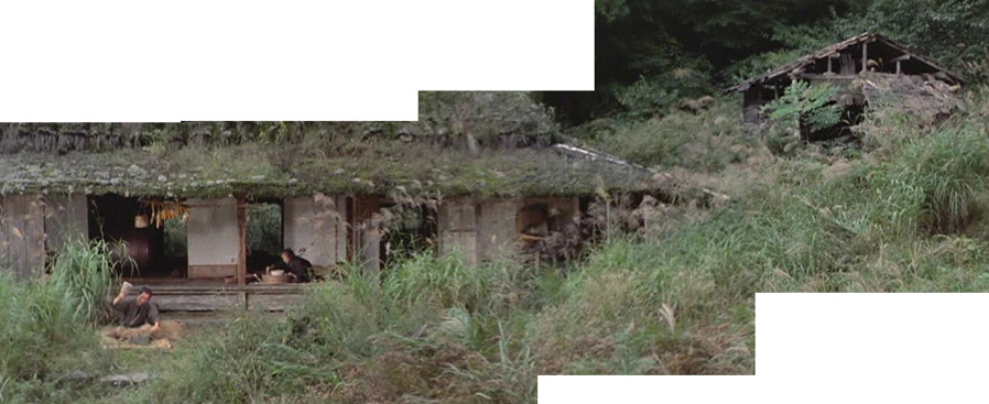 | 「座頭市物語」の第11話「木曽路のつむじ風」の民家。一連の画像と一致。 ↓ |