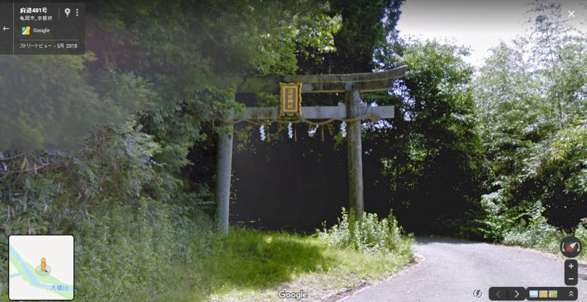 | グーグルのストリートビューの画像。鳥居の神額は撮影時に取り外した模様。 ↓ |