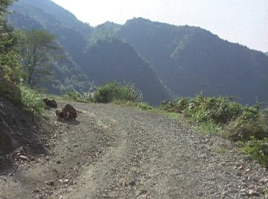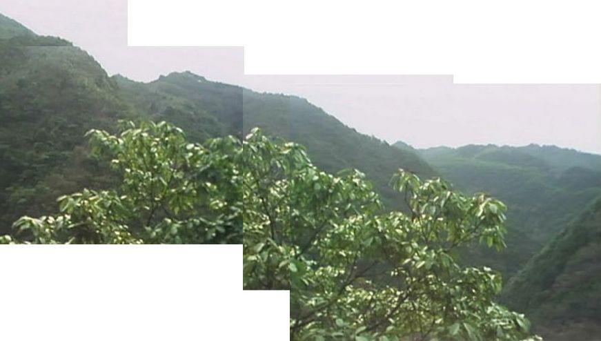 | 「黄門さまは時の氏神」のシーン。撮影位置が少し異なるが山並みが一致。(一部拡大画像) ↓ |