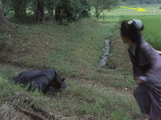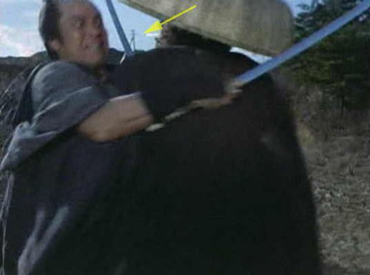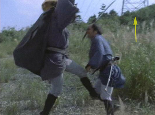 | 「第7話 六地蔵の影を斬る」。ガンマイク。 ↓ |