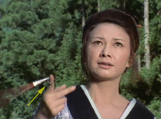 | 「第20話 暁の追分に立つ」。キセルを指でクルクル回すための輪っか。 ↓ |