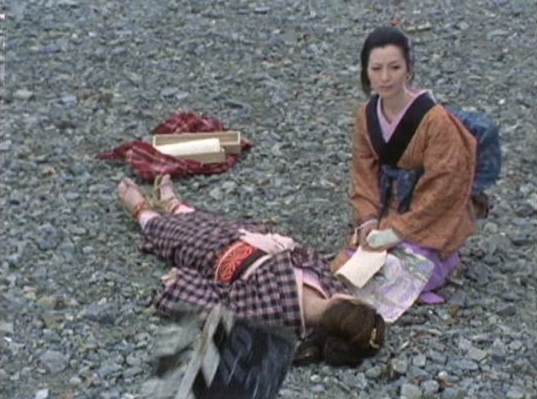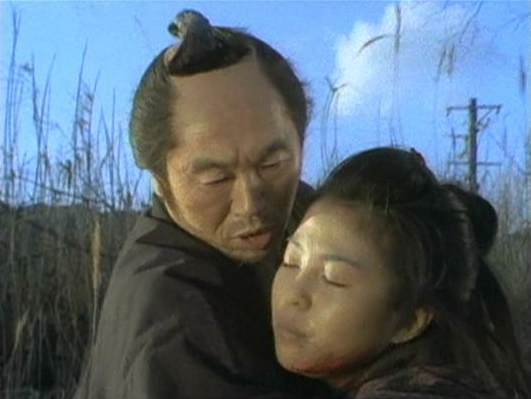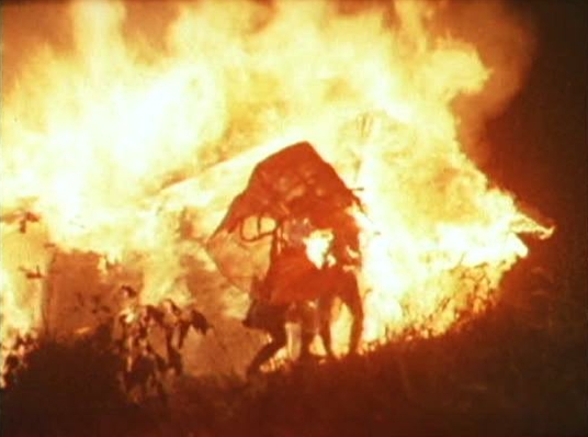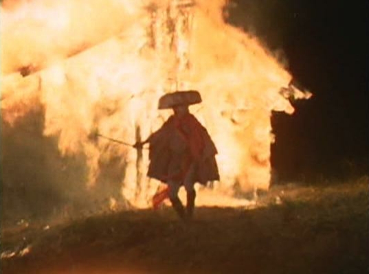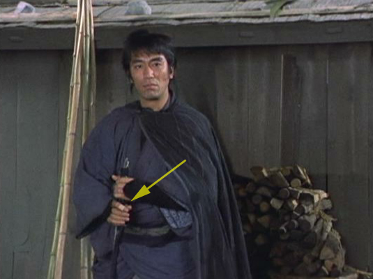 | ストーリー的には、紋次郎が火のついた赤い反物をまとっていることになっている。 ↓ |