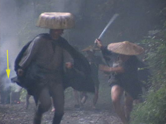 | 「第4話 雷神が二度吼えた」。スモークを焚くドラム缶。 ↓ |
