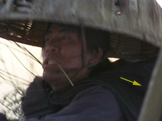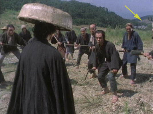 | 「第7話 六地蔵の影を斬る」。サンバイザーをかぶったスタッフ。 ↓ |