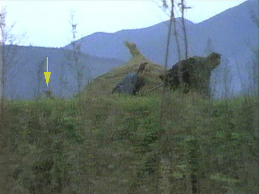 | 「第26話 獣道に涙を棄てた」。赤牛に扮するスタッフ2人。 ↓ |