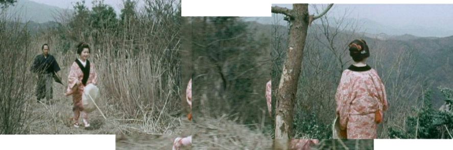 山道を駈けてくる栗田ひろみ。(切り貼り合成画像)