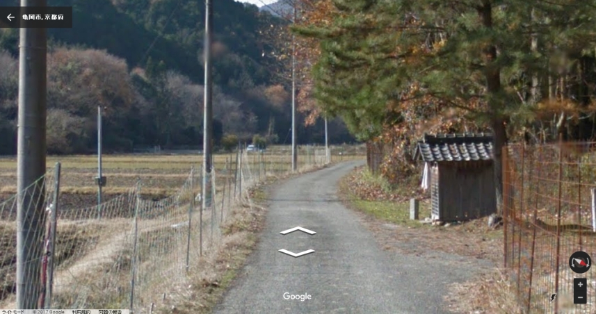 グーグルのストリートビューの画像。しかしここまで害獣よけの柵やネットが設けられてしまうと、もうロケには使えない。