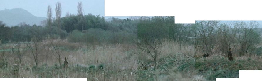 「虹を渡る武士」の河原。ロケ地はもっと奥の場所であろう。