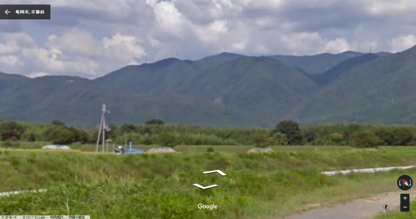 グーグルのストリートビューで現地の北東方向を見た画像。山並みが一致。